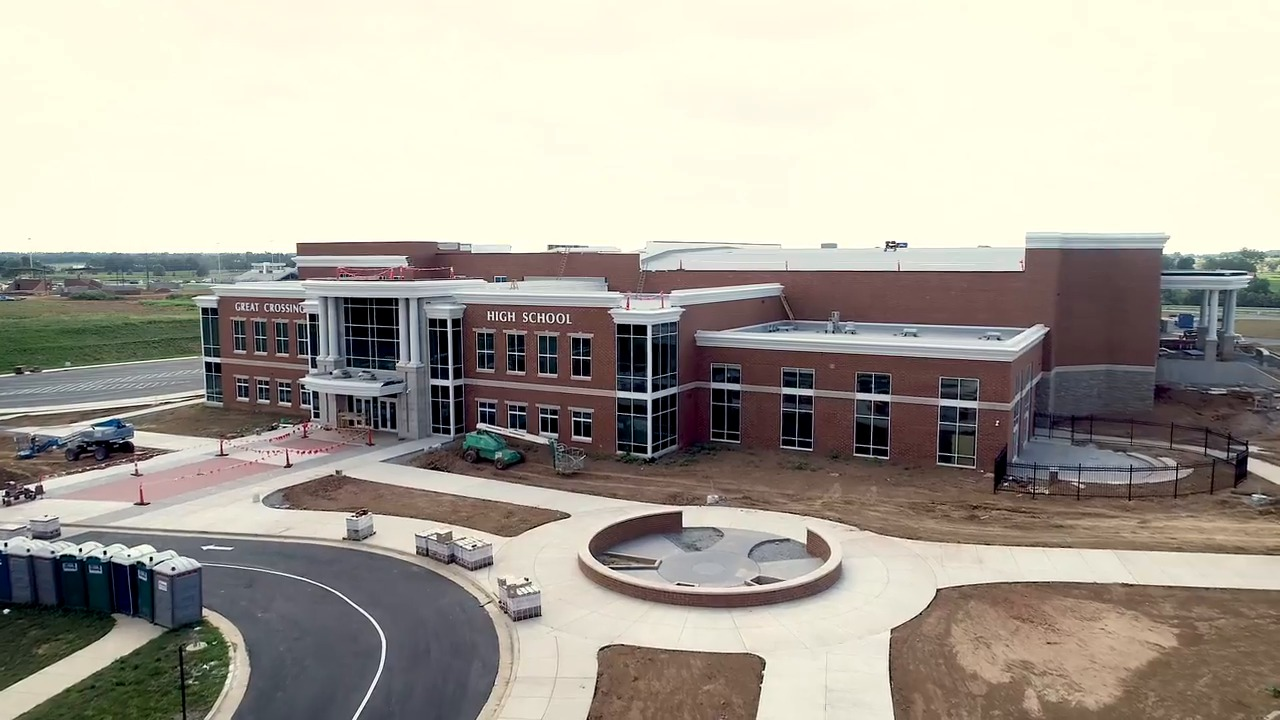 Great Crossing High School located on Betsy Way in Scott County, Kentucky with 40 state of the art classrooms. The school has 450 Geothermal Wells Syste, 150 water source heat, acid waste DWV system, and a C&C machine shop.
